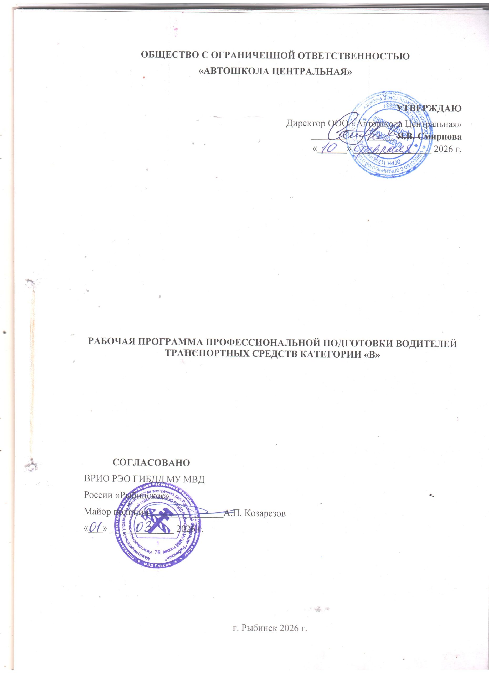 Примерная программа подготовки водителей транспортных средств категории B, C (утв. Минобрнауки РФ 25 ООО